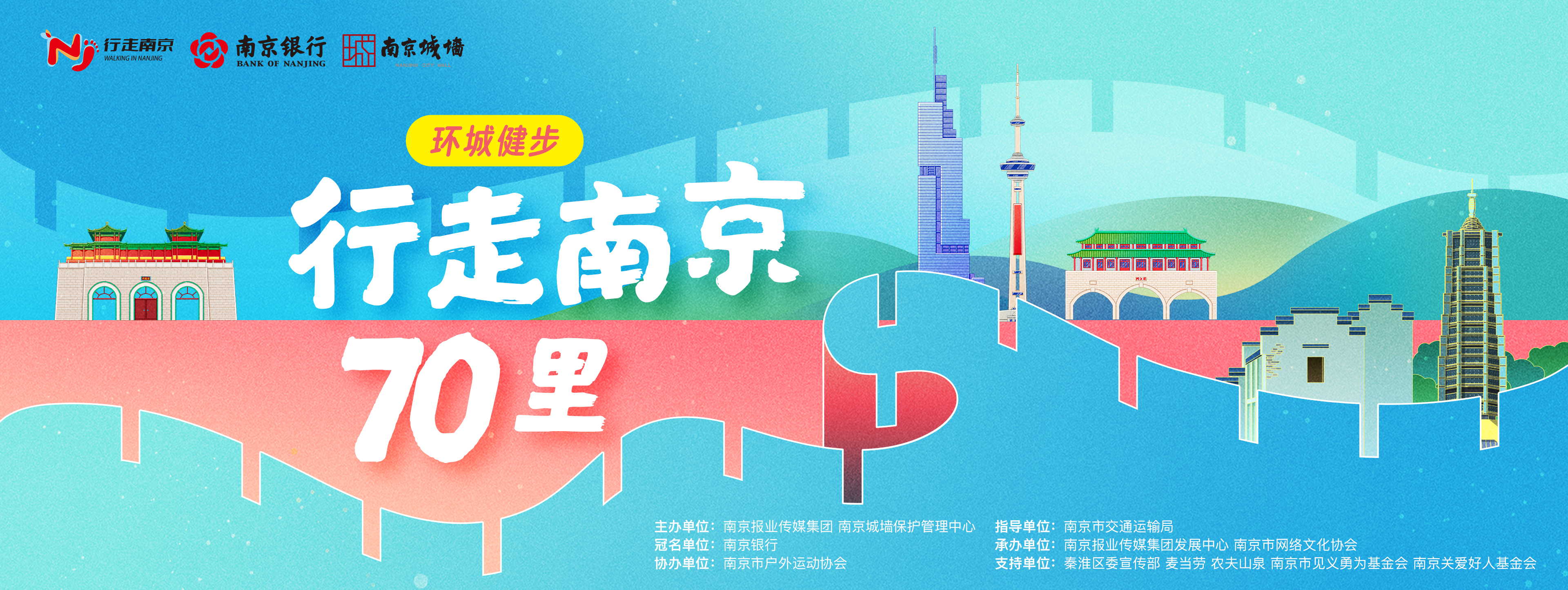 本次“行走南京70里”环城公益健步走活动由南京报业传媒集团、南京城墙保护管理中心联合主办,南京银行冠名。